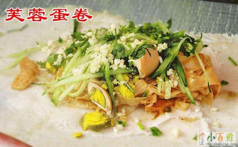 技术简介:芙蓉蛋卷是一种很独特的小吃,薄薄的皮子,不是春卷皮,劲道十足,很Q的那种,里面包上很多小菜,比如素海螺,卤鸡蛋。香菜,蒜水。榨菜等等x~b~a~i~x~i~n~g~c~o~m。